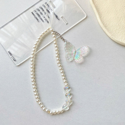 Beaded Lanyard DIY Creative Acrylic Phone Chain Beauty Fashion Jewelry Accessories Cartoon Bear Butterfly Pearl Bracelet Unisex